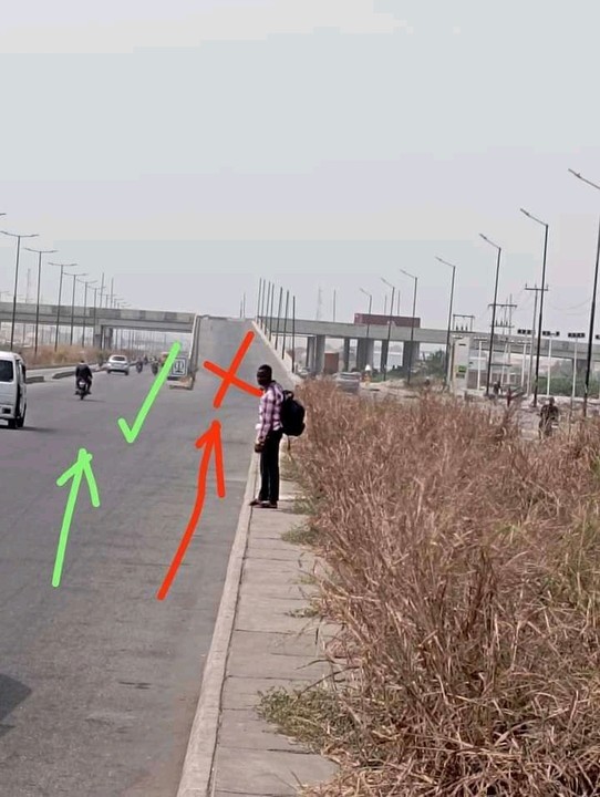 This is the trick… Ones you board their bike from mile2 or wherever mainly at night. They will pretend as if they want to take the normal lane(green mark) and on approaching the demarcation between the ground lane and the bridge, they will swerve on to the bridge where their other gang members are standing waiting for victims. So they will immediately descend on you with different types of weapons and dispossess you of all your valuables.