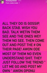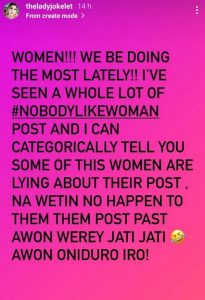 Joke in her post shared on Instastory, said most women participating in the challenge have been lying.