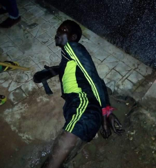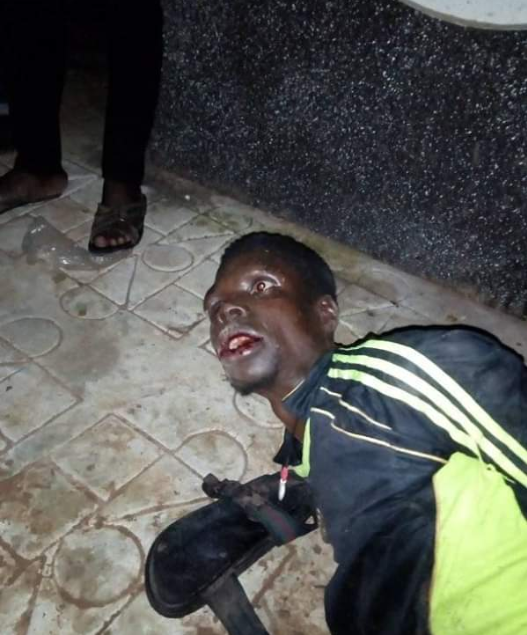 According to reports, he was caught at Students Villa, off campus, Federal University Wukari in Taraba State. He was then descended upon by a mob who tied him and beat him up till he was bleeding from his mouth.