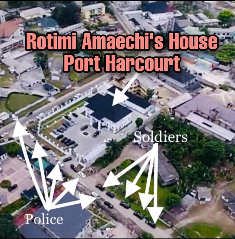 A Facebook user who did a live video while passing near the former Rivers governor’s residence – criticized the federal government for allowing such number of security agents including the police and army to be guarding one house ahead of the elections tomorrow.
