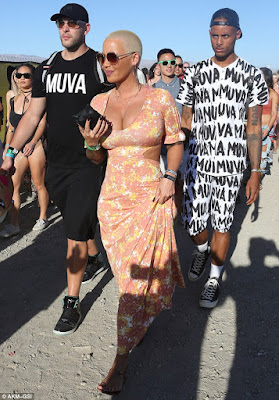 Amber Rose who is also at the Coachella music festival stepped out with her 2 assistants wearing a cut out floral dress.