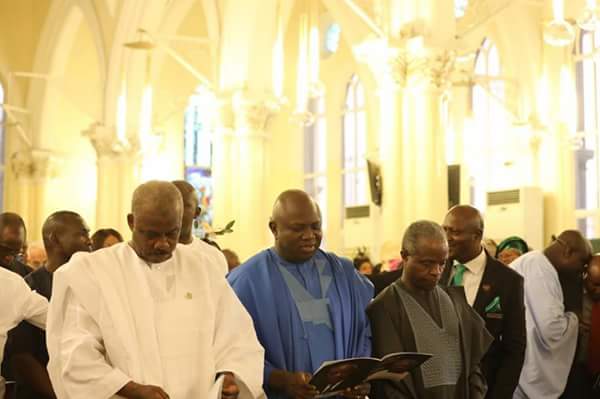 The Vice President, Prof. Yemi Osinbajo, former Head of State, General Yakubu Gown, Ogun State Governor, Senator Ibikunle Amosun and his colleague from Lagos State, Mr. Akinwunmi Ambode, joined family and other dignitaries from all works of life, at a thanksgiving service to mark the 80th birthday of Lt. General Theophilus Yakubu Danjuma (GCON), at the Cathedral Church of Christ, Marina, Lagos on Saturday.