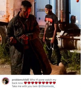 Fellow rapper Problem Child 5 posted a photograph of the pair with the caption: “Who tf gone watch my back now. Take me with you twin” alongside a stream of broken heart emojis.