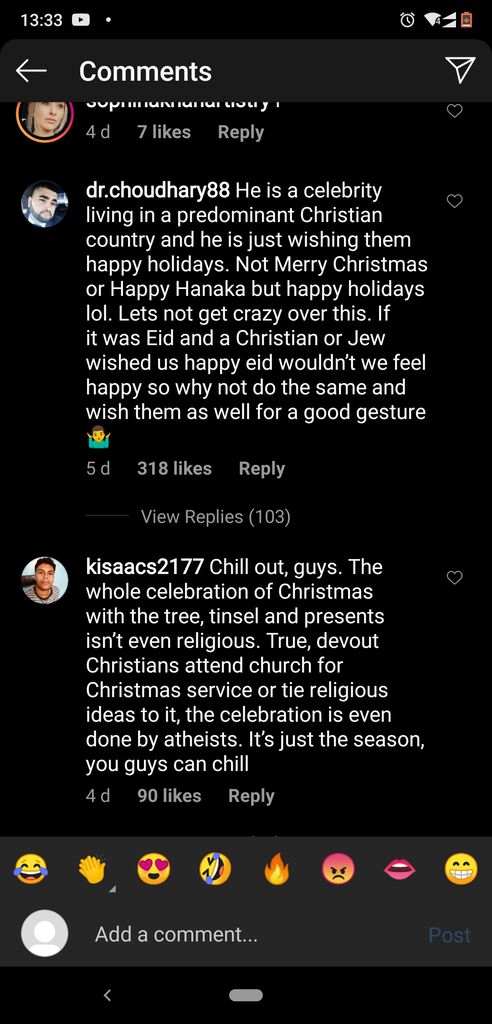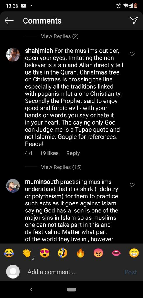 However the picture was not well received by many of Khan’s Muslim social media followers who accused him of promoting unislamic religious practices.