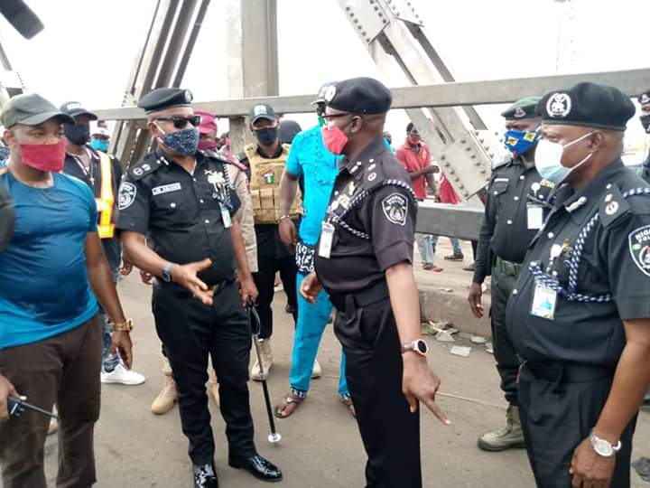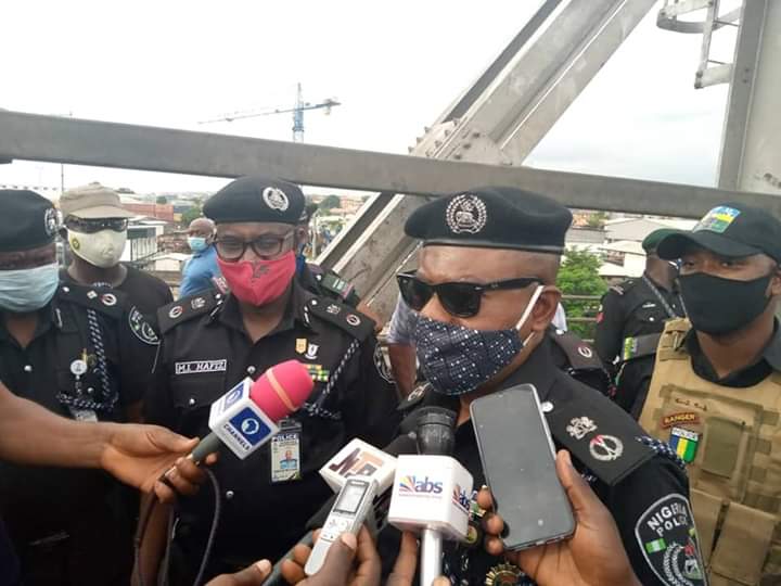 Anambra and Delta States Commissioners of Police, John Abang and Hafiz Muhammad, in company of officers of the Commands, today, Monday, 11th May, 2020 visited Headbridge, Onitsha, to decongest the bridge, ensure free movement of only essential goods and services, as well as enforce strict compliance with the ban on movement across State boundaries, which the two State Governments directed, as part of measures to contain the spread of the Coronavirus.