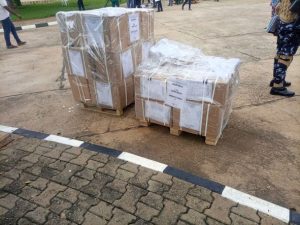 The INEC team, led by the National Commissioner and Chairman, Information, Voter Education and Publicity Committee of the commission, Festus Okoye, are currently in the premises of the Central Bank of Nigeria (CBN) distributing the materials to the LGAs.