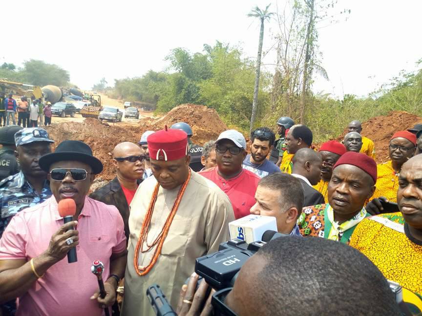 The hardworking Governor of Anambra State, Chief Dr Willie Obiano is currently in Nteje the Headquarters of Oyi LGA to inspect the level of work done in the ongoing construction of the Nengo River Bridge in Nteje.