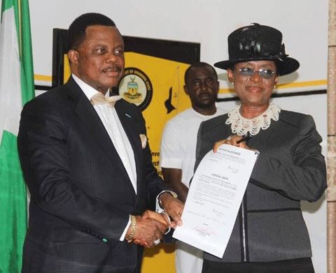 The Anambra state governor, Chief Willie Obiano has sworn in a new acting chief judge for the state. She is Justice Ijem Onwuamaegbu.