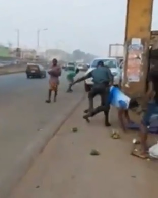 The sad moment some Anambra task force officials dragged a roadside trader on the floor after scattering his wares has been exposed on social media leading to a call for them to be stopped.