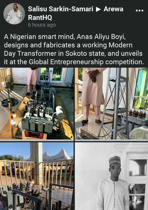Anas Aliyu Boyi designs and and fabricates a working modern transformer in Sokoto state, And unveils it at the Global Entrepreneurship Competition.