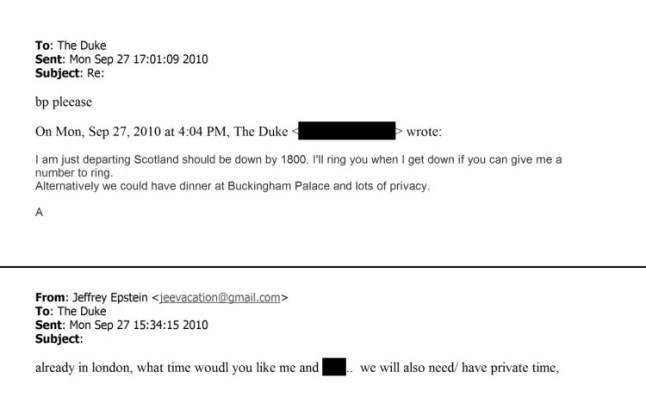 In a response, an email signed off by ‘A’ suggested: “Alternatively, we should have dinner at Buckingham Palace and lots of privacy.”