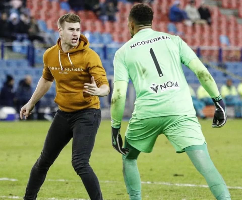 🏟 However, Okoye wasted no time in confronting the pitch invader and chased him off the pitch much to the displeasure of some sections of the home fans. A few minutes later, Okoye was floored after a beer bottle was thrown at him from the stands.