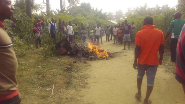 Suspected armed robbers numbering two were on Wednesday, 3 January, 2018 burnt to dead by angry mobs after they were caught by youth in Obong Itam, Itu Local Government Area of Akwa Ibom State.