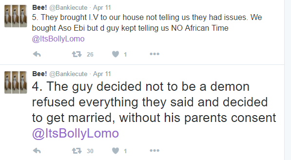 According to Bankie who shared the story on Twitter, this happened in Nigeria because the son went ahead to marry his bride without his parents’ consent.