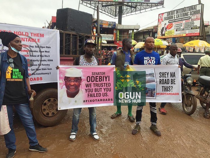 Angry youths in Sango Ota, Ogun state staged a protest today over the bad roads in the city.