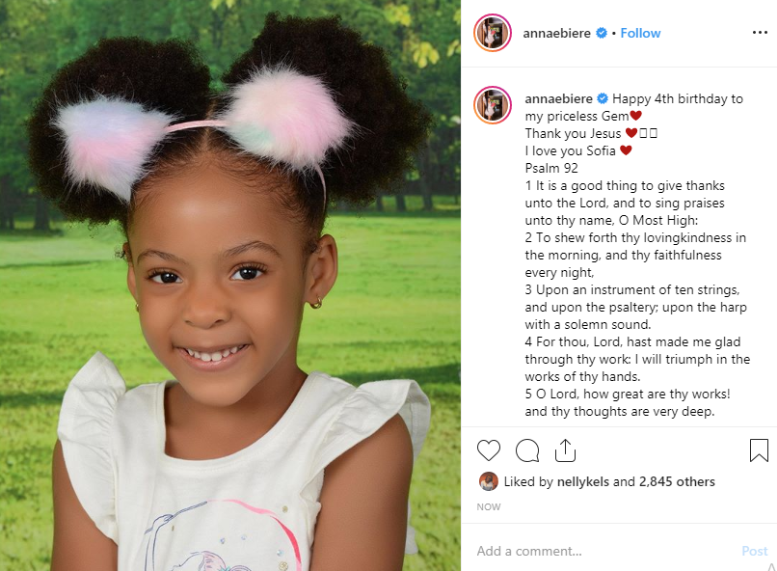 Sofia, Anna Banner and singer, Flavour’s daughter turned 4 today August 1, and the proud mother penned down a birthday message filled with prayers to her.