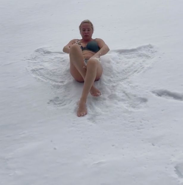 Anna Tereshkova, 52, was filmed performing some “snow angels” in the skimpy outfit in Novosibirsk, Russia, in freezing -20C temperatures.