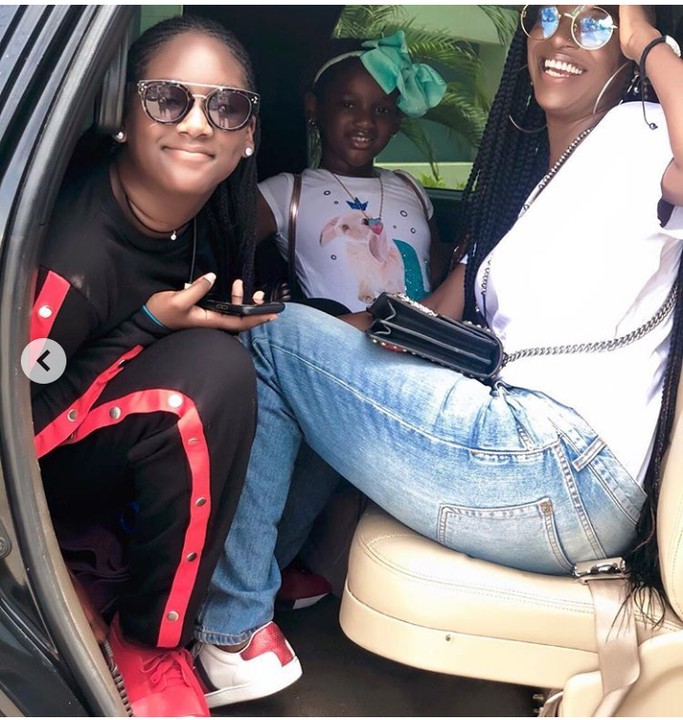 Actress Annie Idibia and her daughters step out for a movie premiere, ‘Dairy of a Wimpy Kid’.