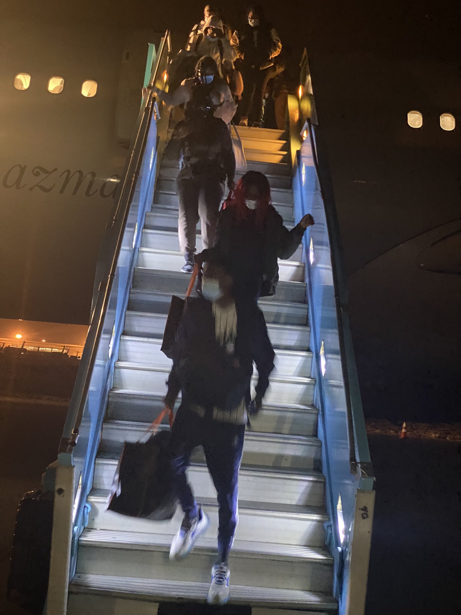 The arrived from Budapest, Hungary, at 8:50 pm on an Azman Air flight.