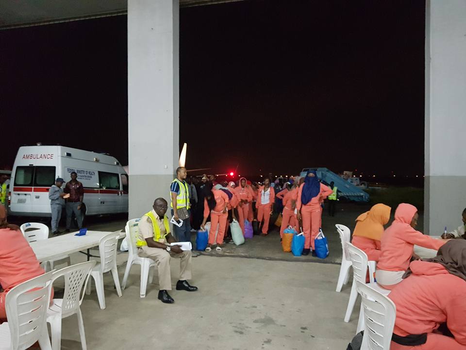 The returnees comprising 70 female adults including nine pregnant women; 90 male adults, three children and eight infants arrived at the cargo wing of the Murtala Muhammed International Airport, on Monday evening.
