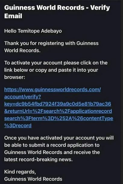The chef went on to share screenshots of his registration to the Guinness World Record and a screenshot of the verification email he had received.