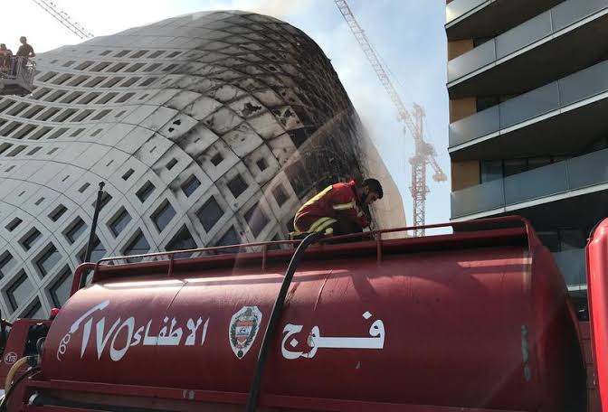 Fire trucks quickly doused the flames that charred a corner of the futuristic building designed by the practice set up by the late Zaha Hadid, the renowned British-Iraqi architect.