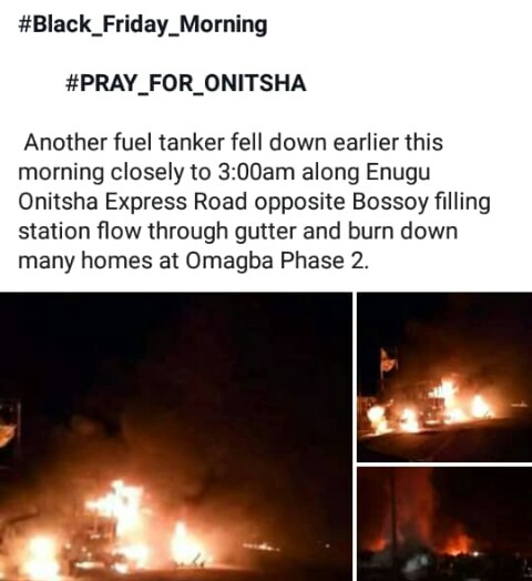 Barely 48 hours after Onitsha tanker explosion, another tanker explodes at Omagba Phase II in Anambra state along Onitsha Enugu expressway, destroying businesses and properties, as at the time of filing this report no life has been confirmed lost.