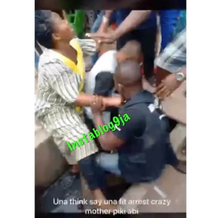 The incident happened in front of a Polaris bank. The lady and her son had gone to carry out a transaction at the bank, only for AK – attached to State CIID, Mowonla, Ikorodu – to start harassing the boy while waiting for his mom outside the bank.