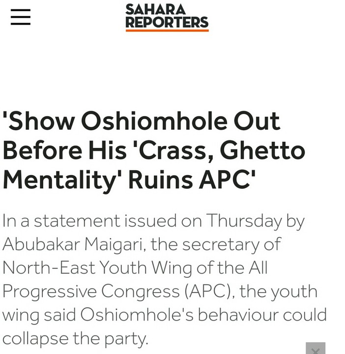 The North-East Youth Wing of the All Progressive Congress (APC) has raised concerns about the “crass and ghetto mentality” of Adams Oshiohmole, the National Chairman of the party.