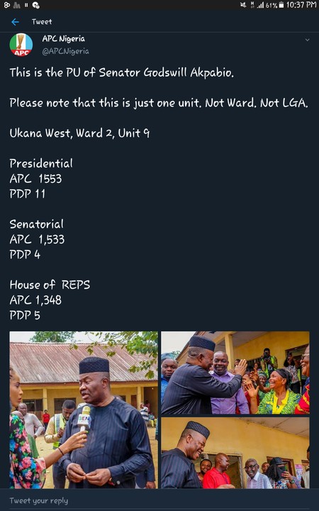 As shared by their official handle on twitter @APCNigeria, the akwaibom state Senator has delivered his polling unit to the ruling party – APC.