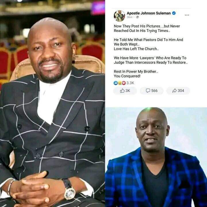 General Overseer of Omega Fire Ministries (OFM), Apostle Johnson Suleman has criticised his colleagues who “judged” gospel singer Sammie Okposo when he was involved in a scandal but are now posting his photos to mourn him following his death, IGBERETV reports.