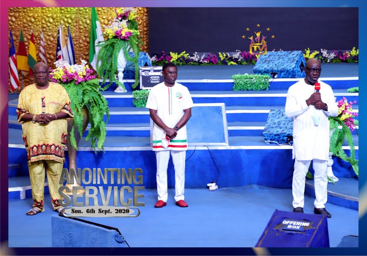 Following his brief speech for which he received cheers from the worshippers, Apostle John Suleman prayed for peaceful conduct of the election and strength for Obaseki who knelt down before the whole church.