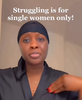 ‘’Struggling is meant for single women only.  If you are married, engaged, you have  boyfriend or a man in your life that both of you claim each other, that word, struggling, should not exist in your vocabulary. Majority of the people that beg me for money on social media are either married women or women with a man. Are you not ashamed of yourself? You are coming to beg single women? And you people will still go online and say ‘Go and find a husband, nobody wants to marry you!’