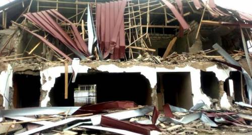 Armed men on Friday stormed the staff quarters of the Nigerian High Commission in Ghana with bulldozers, demolishing a block of apartments on the property.