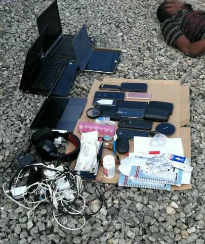 According to him, items recovered at scene comprised GSM handsets, four laptops, computers, wallets and some other valuables, belonging to the residents of the compound.