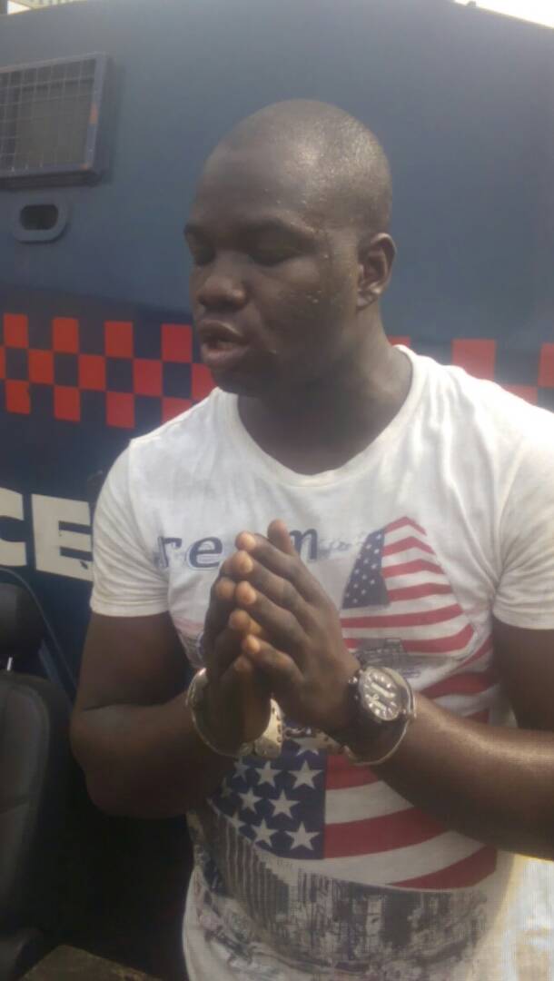 This man was arrested yesterday evening by the officials of the Nigerian Army with the assistance of RRS Armoured Personnel Carrier (APC) in a Toyota Bus for impersonating a Commondore of the Nigerian Navy.