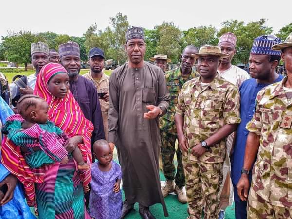 Borno State Governor, Babagana Umara Zulum, on Saturday in Gwoza, received another Chibok Girl who was rescued by the 26 Task Force Brigade, Gwoza.