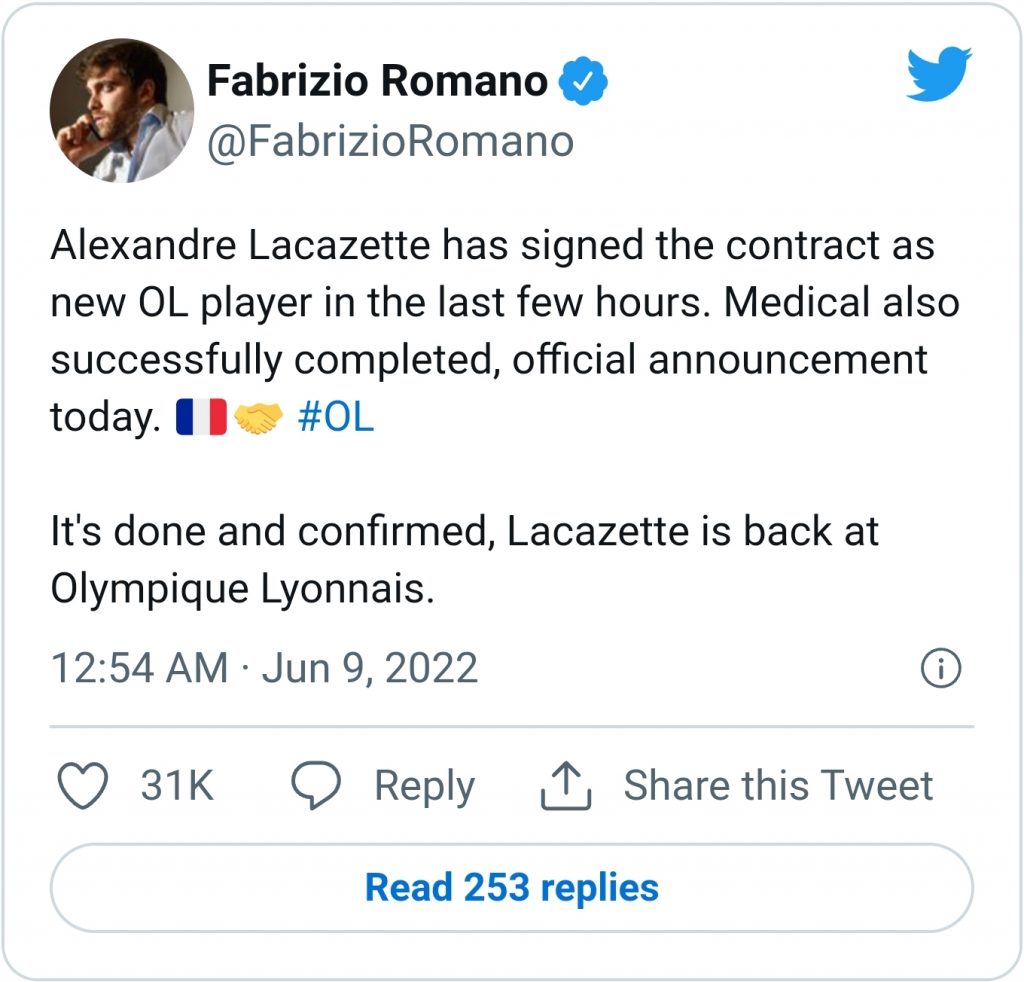 Furthermore, Lacazette himself had admitted that Lyon was a club that was close to his heart in an April interview with Canal Plus.