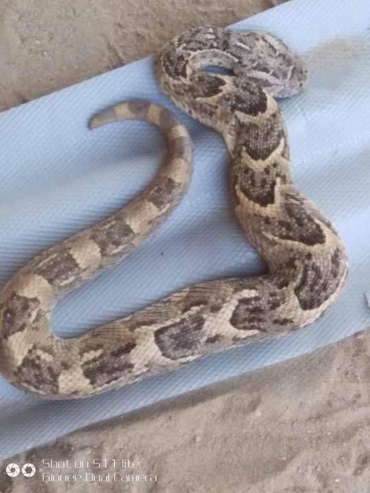 I was afraid at first because I know how dangerous this snake is. I had to call some guys to join me. Incidentally, another one was killed less than one hour earlier in the same neighborhood, about 3 houses to where we killed this one, though, bigger than this.
