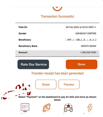 The brand ambassador took to her social media page to share an image of the transaction receipt as she lamented over the mistake.