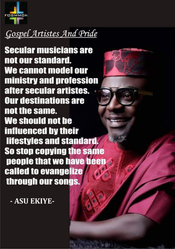 I have said this severally: secular musicians are not our standard. We cannot model our ministry and profession after secular artistes. Our destinations are not the same. We should not be influenced by their lifestyles and standard. So stop copying the same people that we have been called to evangelize through our songs. Stop importing worldly values into Christianity.