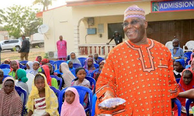 Earlier today, former VP Atiku Abubakar shared photos of himself dishing out food to less privileged children. Some of his followers doubted that he ate the same food he served the children. He replied them, confirming he ate the food and shared photos of him eating it..see that after the cut…