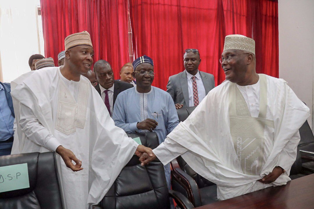 President of the Senate, Dr. Abubakar Bukola Saraki, and former Vice President, Alhaji Atiku Abubakar, at today’s 82nd NEC Meeting of PDP