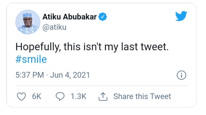Reacting on Friday, Atiku said hopefully he’s not making his last tweet.
