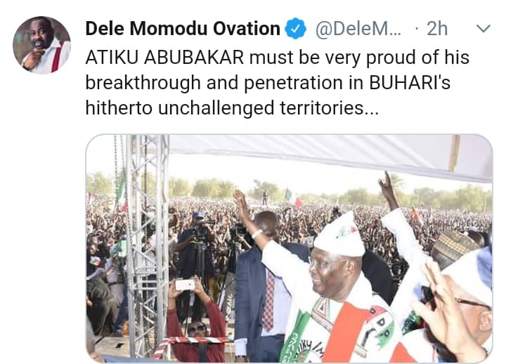 “ATIKU ABUBAKAR must be very proud of his breakthrough and penetration in BUHARI’s hitherto unchallenged territories…”