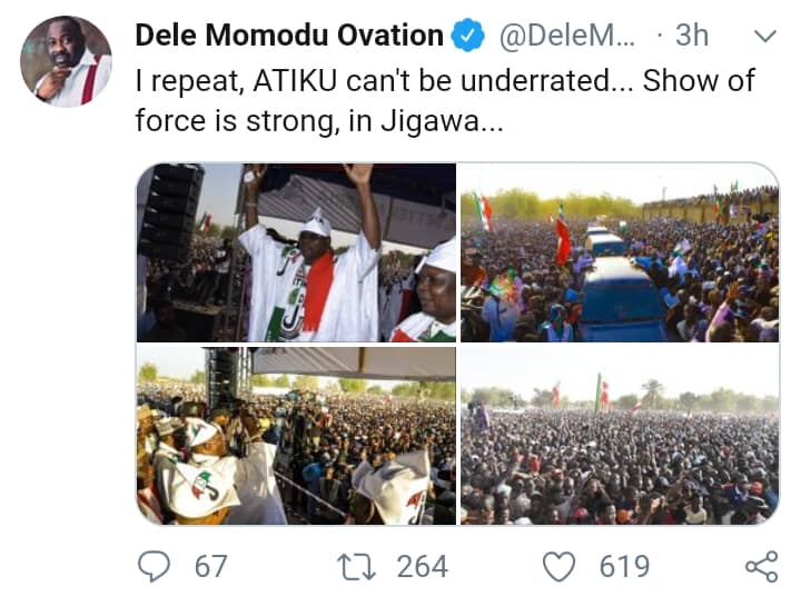 “I repeat, ATIKU can’t be underrated… Show of force is strong, in Jigawa…”