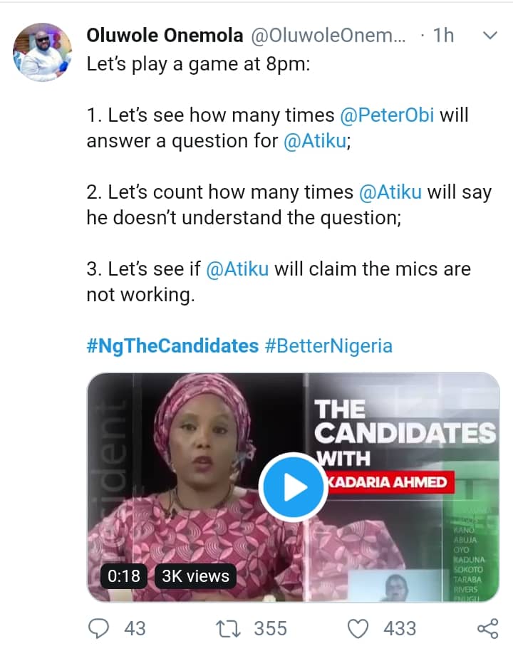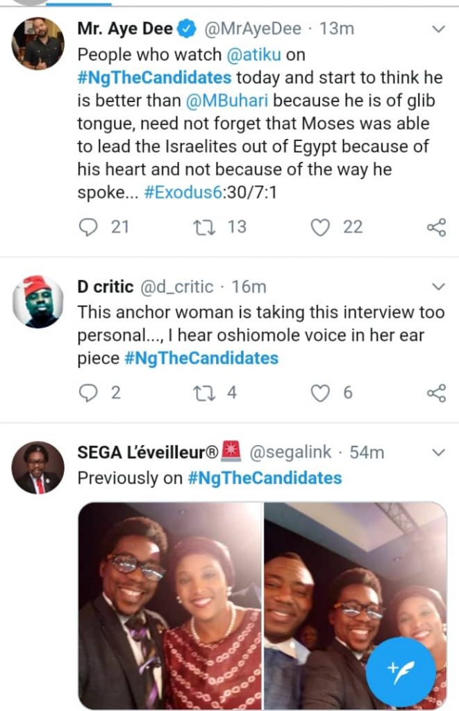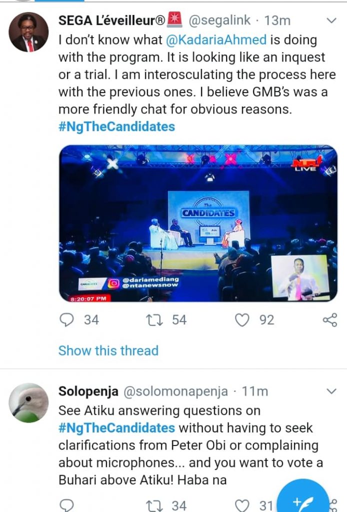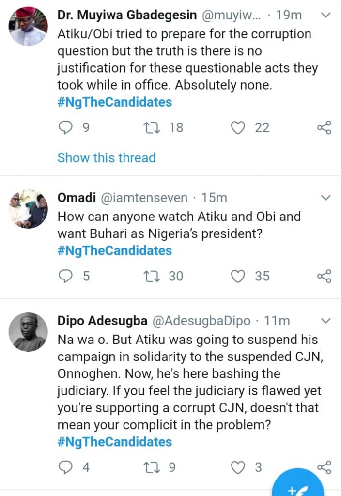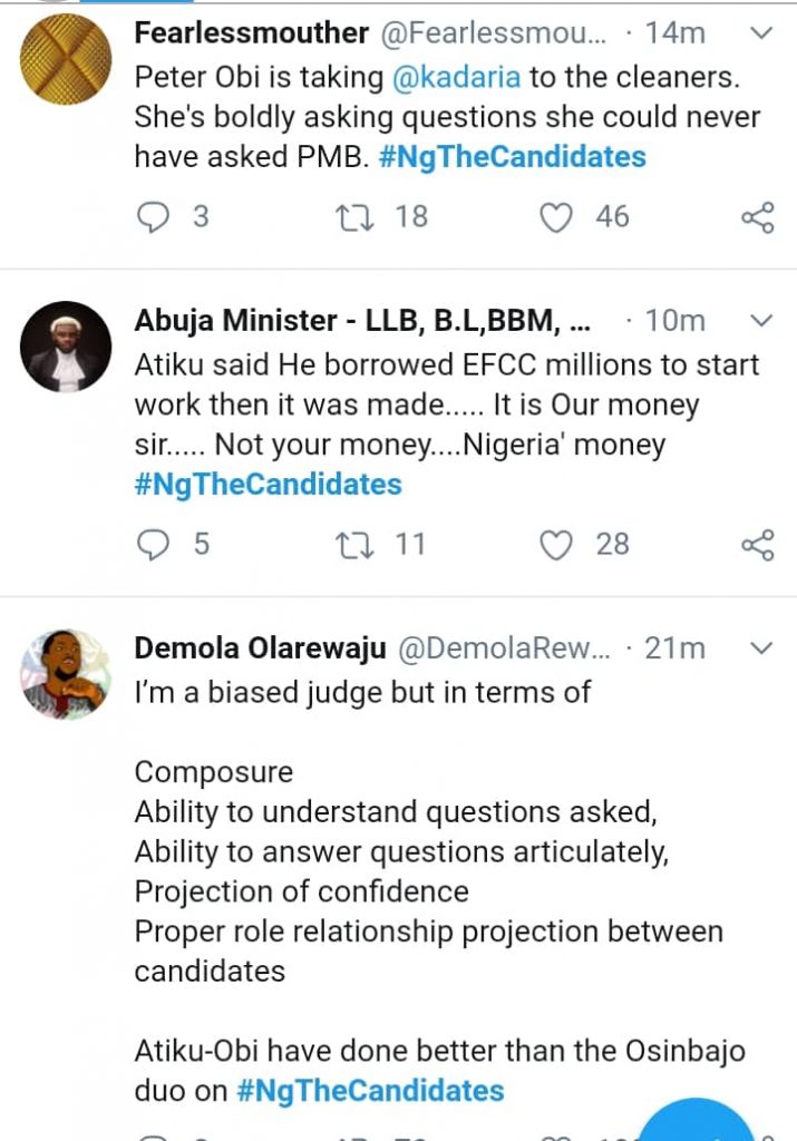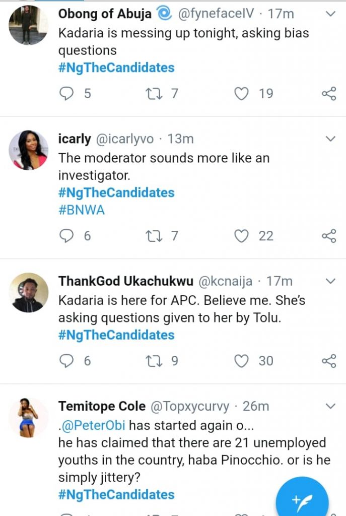 Nigerians are reacting to the appearance of Atiku and Obi on “The Candidates” and some have accused the moderator and interview, Kadaria Ahmed, of bias.