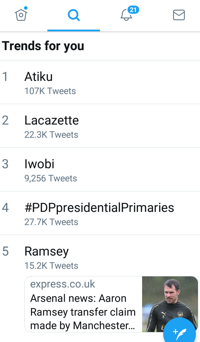 Atiku Ranks Number One, Buhari 12, On Twitter Trending Worldwide (See Top 14) - 9jaflaver