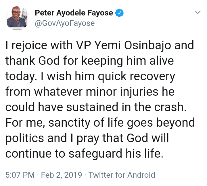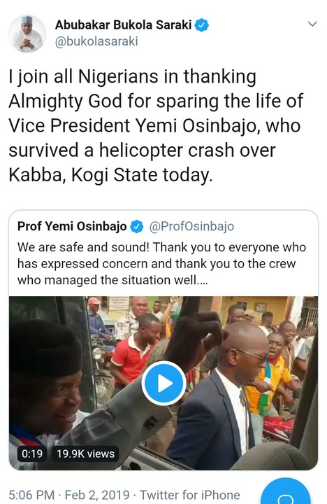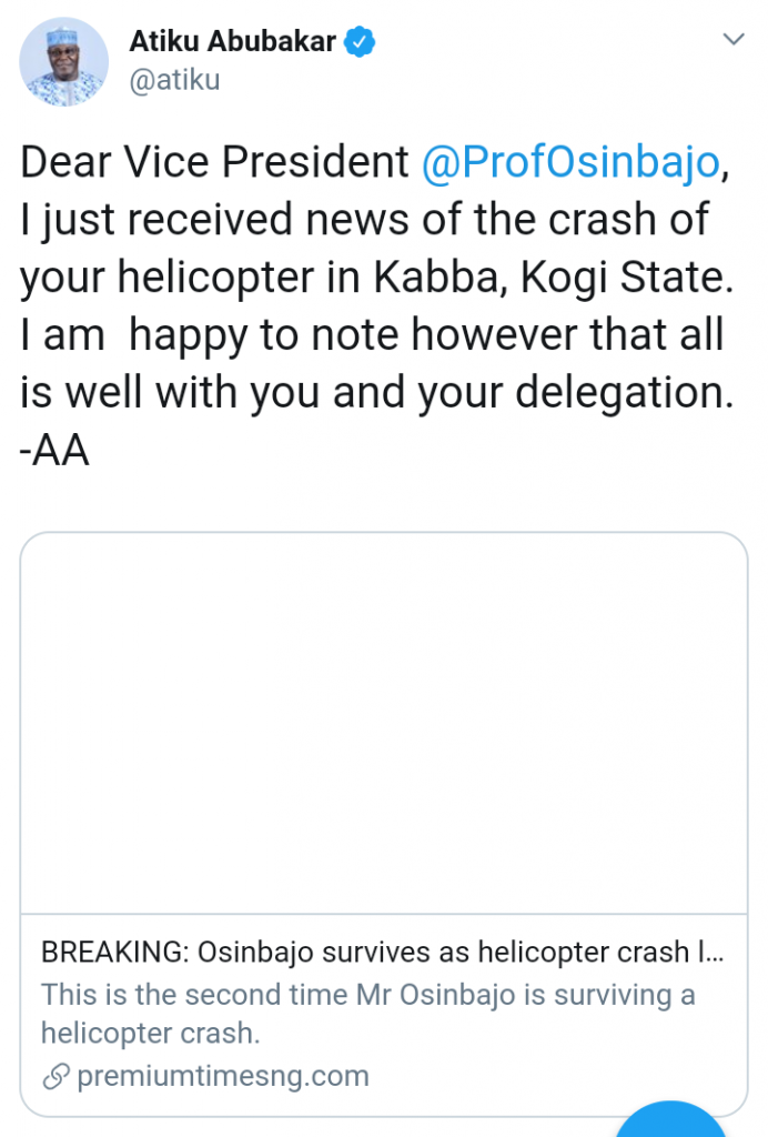 Atiku, Saraki, Bruce, Fayose, Dogara React As Osinbajo Survives Helicopter Crash - 9jaflaver
