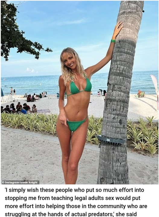 ‘I simply wish these people who put so much effort into stopping me from teaching legal adults sex would put more effort into helping those in the community who are struggling at the hands of actual predators,’ she said.